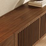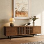 I have been looking at this TV stand on this website for about 2 months, going back and forth, until I finally pulled the trigger at the end of November 2024. I was hesitant because I wasn't sure about the sturdiness and quality of the wood material based on the pictures. (There was only one Youtube video I could find.). I finally held my breath and clicked. I know psychologically, people have a purchase justification engine in them where you convince yourself that it was a good decision. But I absolutely didn't need to convince myself. I had the warm and fuzzy feeling, opening up the box and saw the quality of the wood. It was solid (very un-Ikea-ish). After I put the legs on and turned it over, more warm and fuzzies as it was solid. I can equate it to the sound of German car doors when they are shut. And more warm and fuzzies from the design. It completely changed the atmosphere of the living room even with the same TV I had with the old stand. I feel like a bought a new TV with it, even though it's old. So I am very, very satisfied with the purchase. Bottom line: the actual item exceeded expectations based off the pictures on the website.