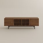 I absolutely love this TV unit. It is exactly what I was looking for in my living room space and provides that mid-century modern aesthetic.Its wood grain is very textured and adds color to my home.This piece is high quality,and can be used only by putting on the leg, which is no trouble for me. With the proper placement of A/V components and some clever cord management, you have a winner! Highly recommended!!