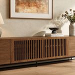 I'm in love! I got the 94inch black version to fit our 70 inch TV on and it looks beautiful! The material is very sturdy and has a high quality feel and look to it. This was the first time I've ordered from Povison and the process was very smooth. It took about 2-3 weeks for it to arrive and the delivery team was able to transport it up to our apartment on the 4th floor of our building. The box was very well packaged, all we needed to do was install the feet. I went back and forth between having the console flat on the floor or not but ended up putting the feet back on to add some height. 100% recommend if you've been eyeing this one.