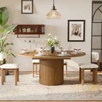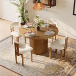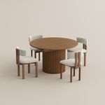 Mid-Century Modern Extendable Dining Table Set For 4 (47" To 63"), Round Walnut Table With Mdf Top & 4 Chairs - Space-Saving Fluted Base For Small Spaces