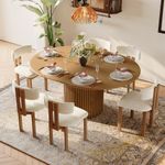 Cotton Linen Walnut Color Engineered Wood Dining Room Set