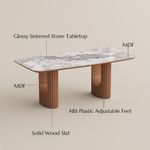 94" Mid-Century Modern Rectangular Dining Table Scratch-Resistant Pandora Glossy Sintered Stone Top & Walnut Fluted Pedestal Base, Easy-to-Clean Kitchen Table