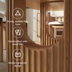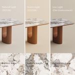 The sintered stone top is extremely easy to maintain. It doesn’t show stains easily, and even after daily use, it still looks clean with just a quick wipe. I really love the solid wood slat detailing on the legs—it adds warmth and texture without looking bulky. The smile-shaped base gives it a unique, sculptural look that stands out from typical dining tables.